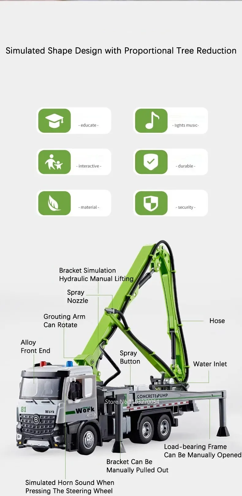 Be the first to review “1:24 Electric Flatbed Trailer Cement Pump Truck Model Toys Diecast Alloy Car Doors Opened Sound Light Vehice Children’s Boy Gift”