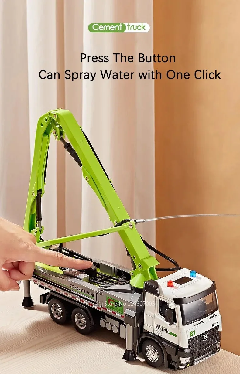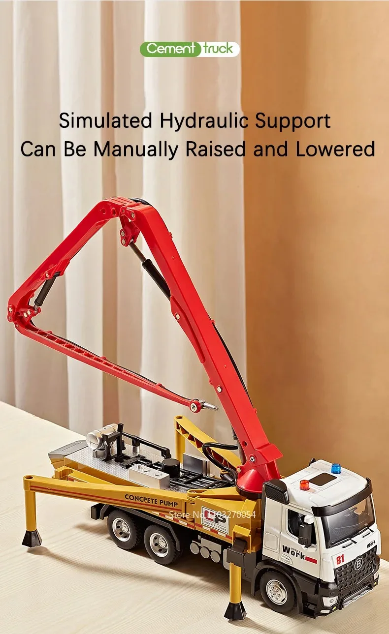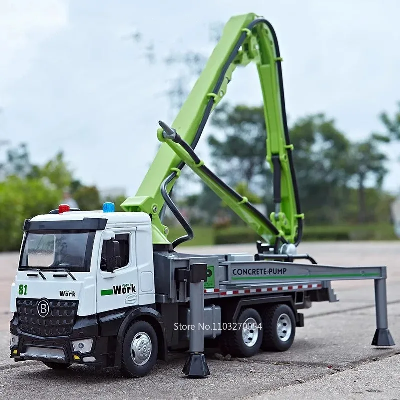 1:24 Electric Flatbed Trailer Cement Pump Truck Model Toys Diecast Alloy Car Doors Opened Sound Light Vehice Children's Boy Gift1:24 Electric Flatbed Trailer Cement Pump Truck Model Toys Diecast Alloy Car Doors Opened Sound Light Vehice Children’s Boy Gift