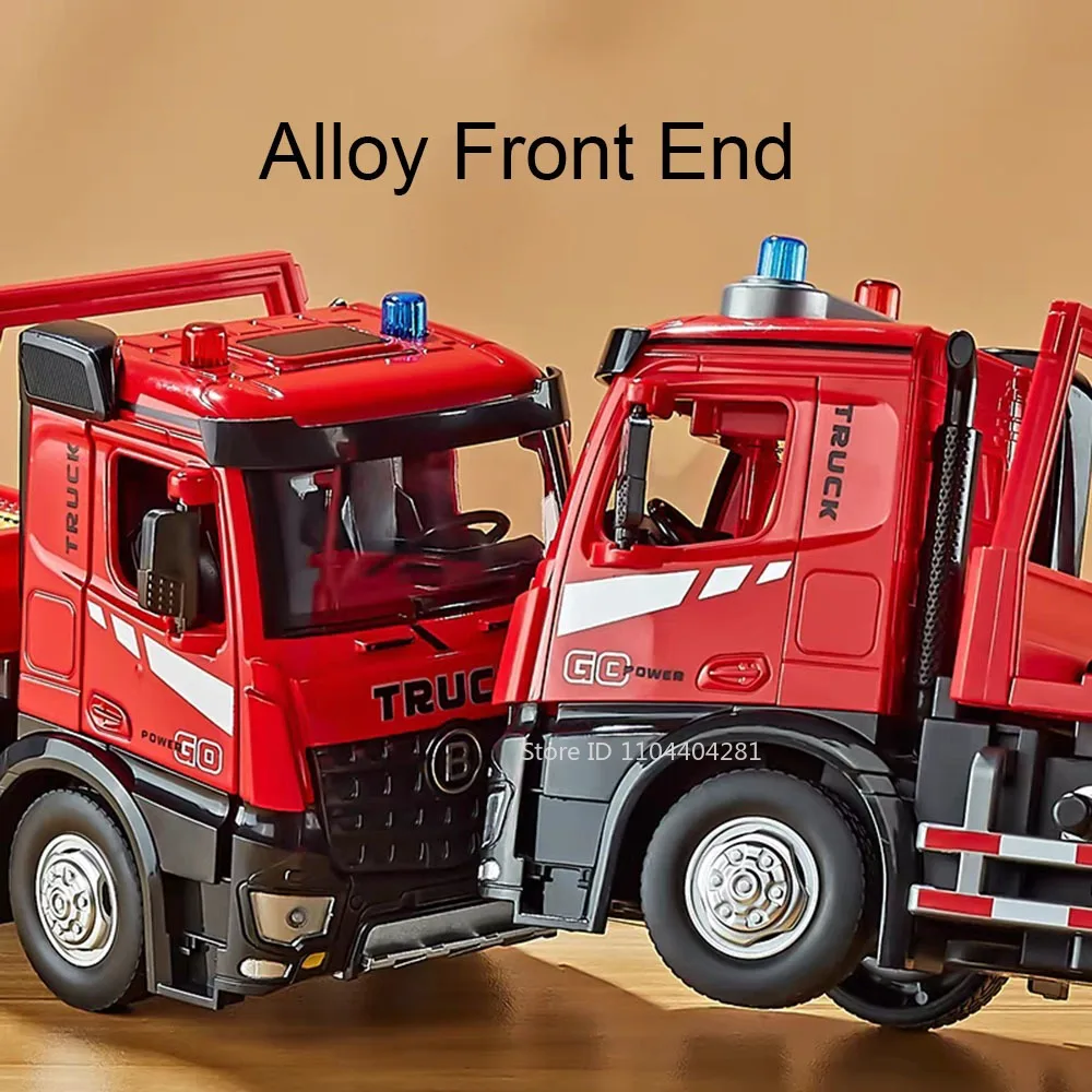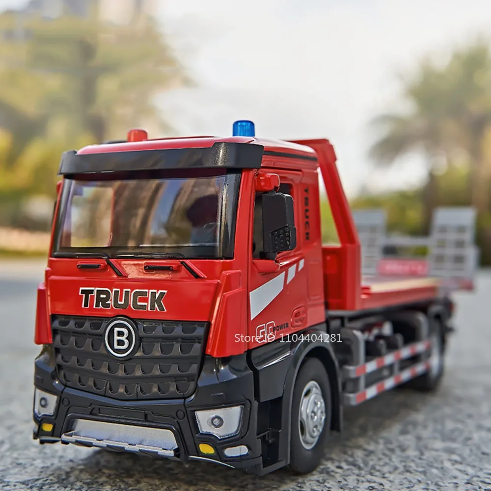 1:24 Electric Flatbed Trailer Cement Pump Truck Model Toys Diecast Alloy Car Doors Opened Sound Light Vehice Children's Boy Gift