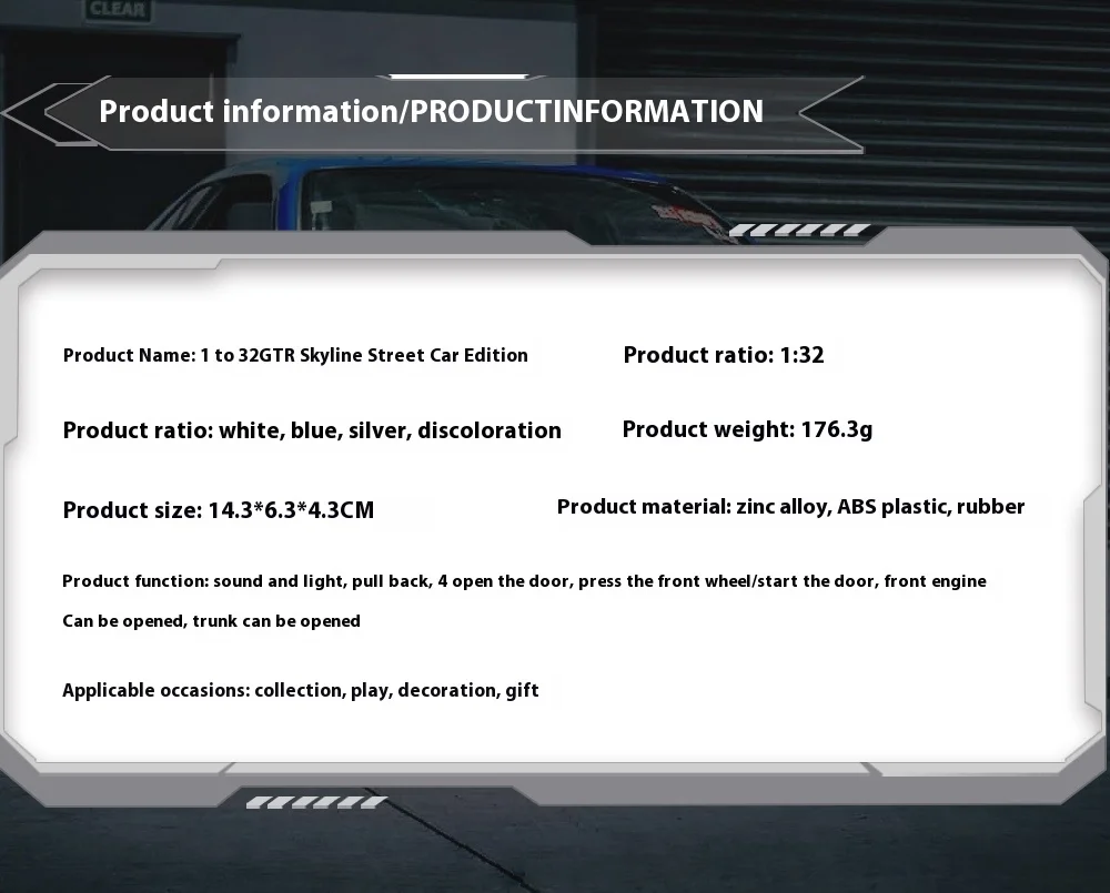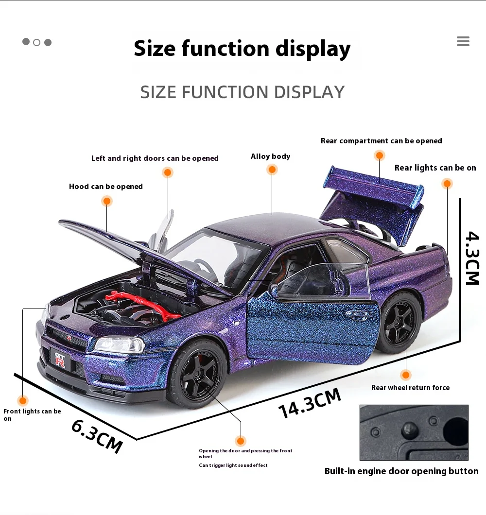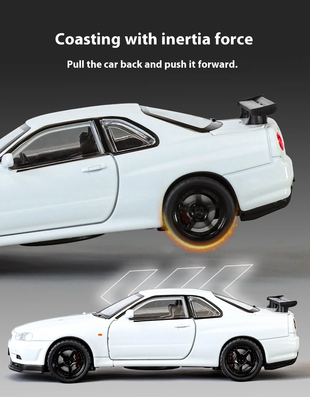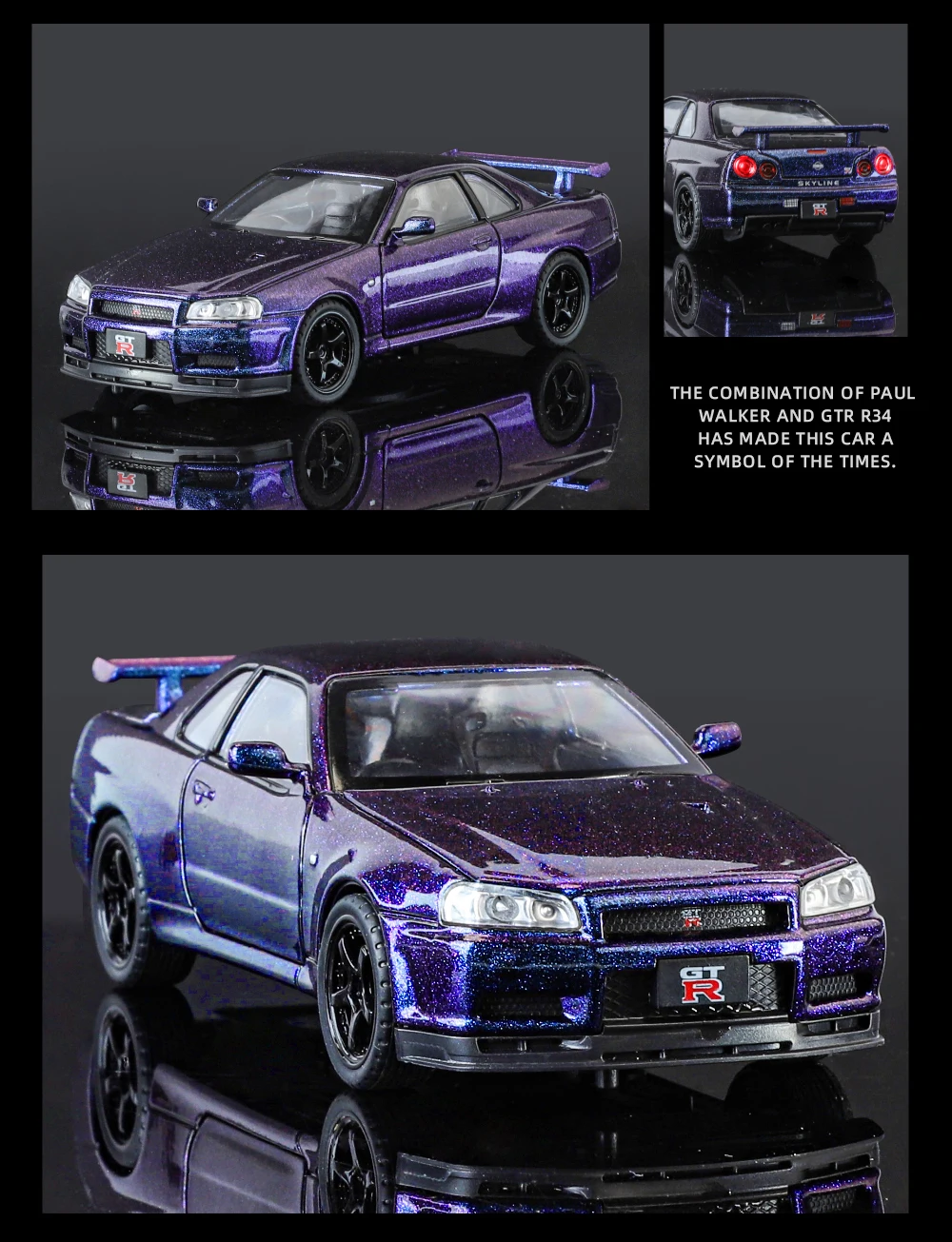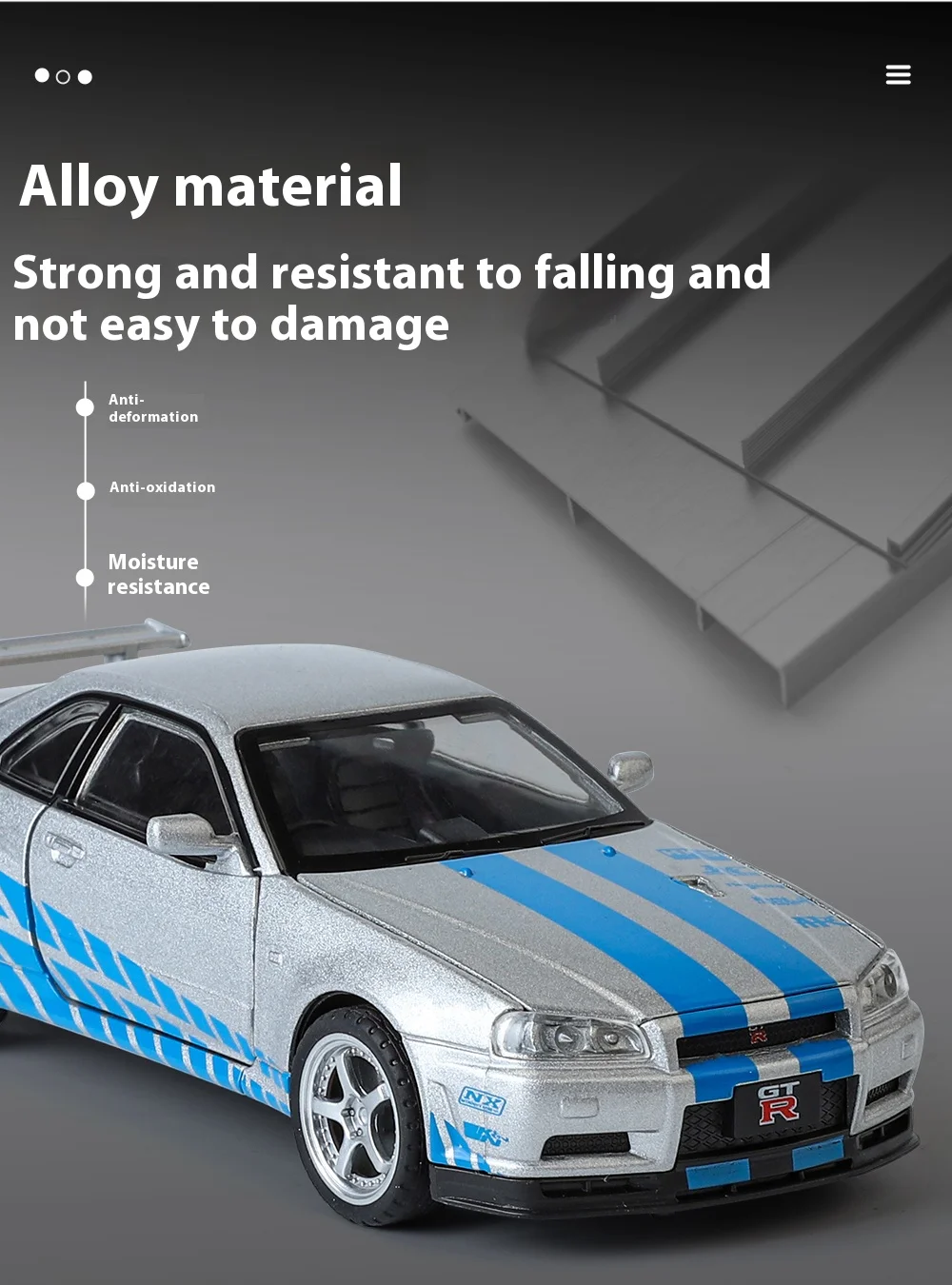 1:32 Nissan GTR R34 Skyline Supercar Alloy Metal Diecast Car Model Sound & Light Collection of Hobby Models Trendy Ornament Gift1:32 Nissan GTR R34 Skyline Supercar Alloy Metal Diecast Car Model Sound & Light Collection of Hobby Models Trendy Ornament Gift