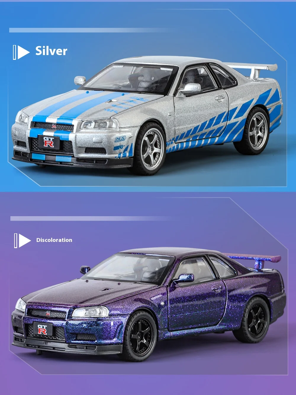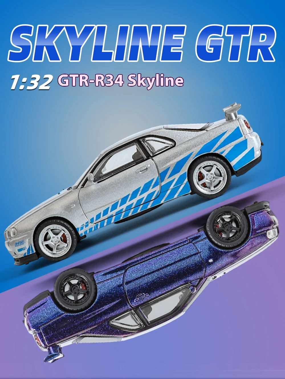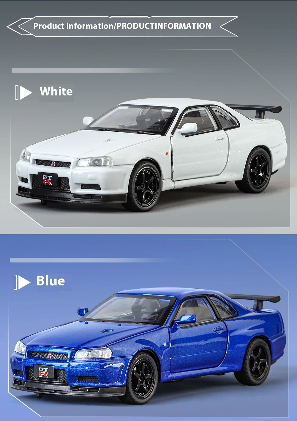 1:32 Nissan GTR R34 Skyline Supercar Alloy Metal Diecast Car Model Sound & Light Collection of Hobby Models Trendy Ornament Gift