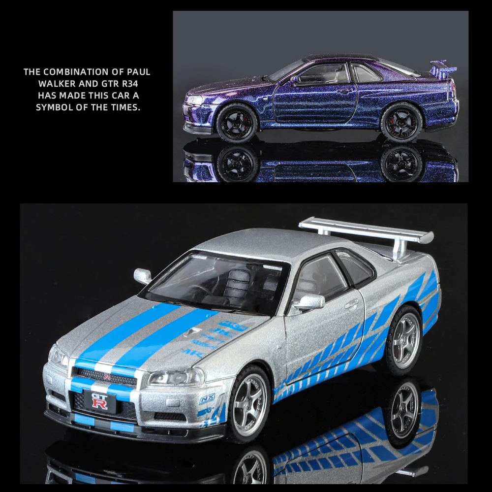 Be the first to review “1:32 Nissan GTR R34 Skyline Supercar Alloy Metal Diecast Car Model Sound & Light Collection of Hobby Models Trendy Ornament Gift”