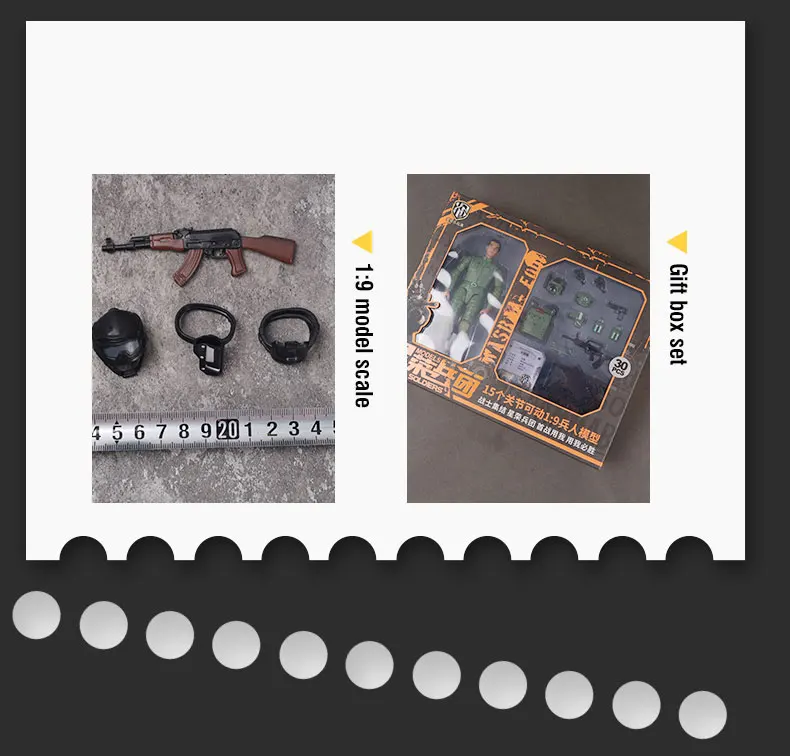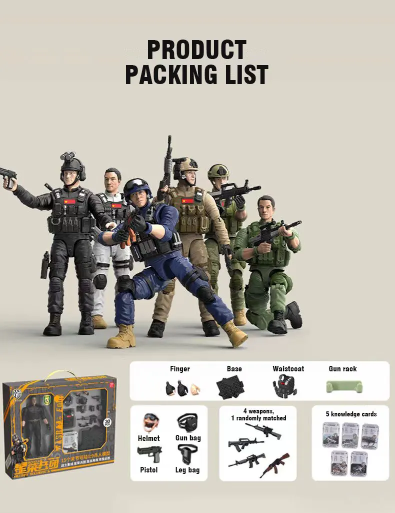 - Â Solid PVC environmental protection material. The soldier model can be disassembled
