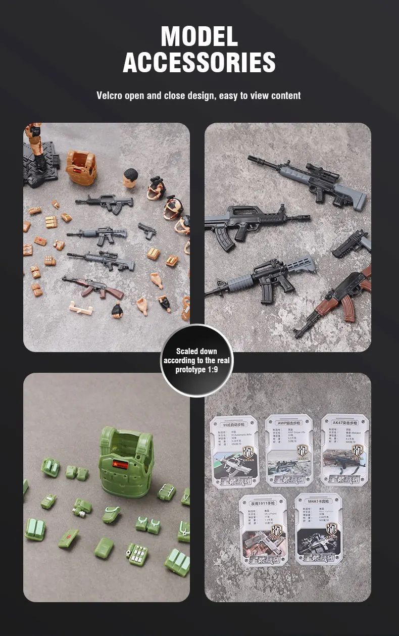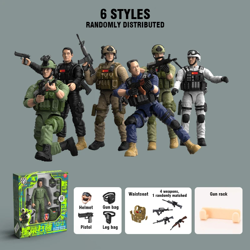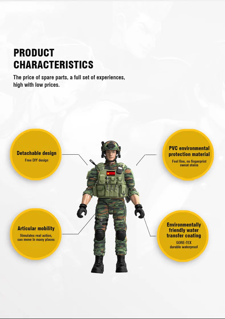 - Â Solid PVC environmental protection material. The soldier model can be disassembled