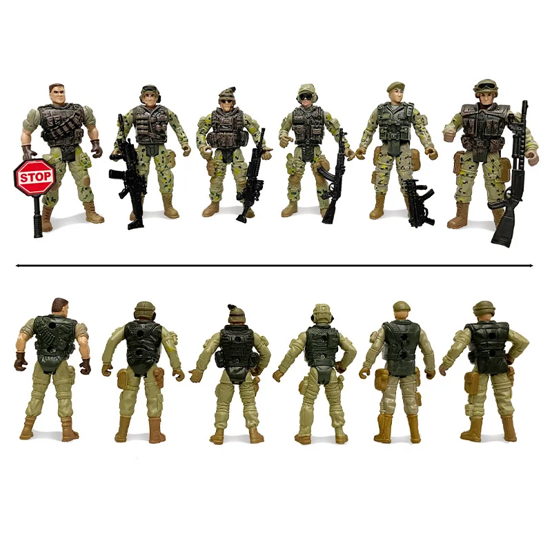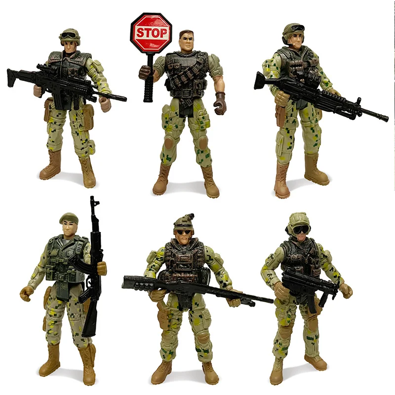 The 6 soldiers are all front-line personnel on the battlefield. They are armed with different weapons and defend the country on the front line. They can turn their arms, feet and heads.