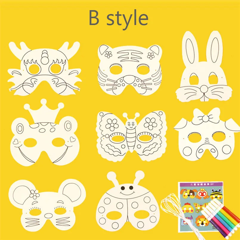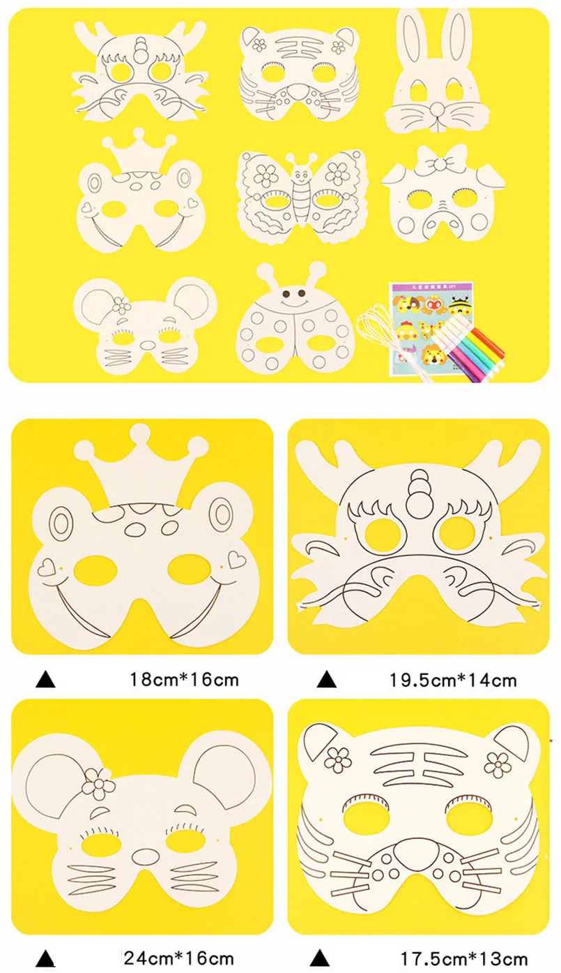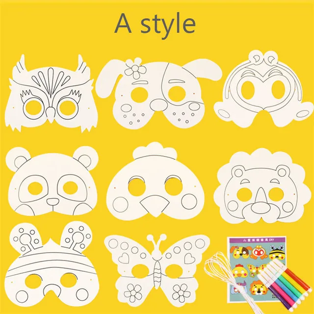 8-Piece DIY Animal Mask Coloring Kit – White Paper Masks with Pens for Kids Art & Crafts8-Piece DIY Animal Mask Coloring Kit – White Paper Masks with Pens for Kids Art & Crafts