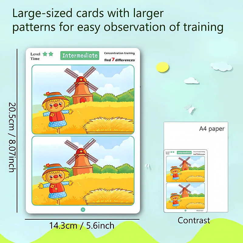 Sharpen your child’s observation skills with this Reusable Find the Difference Game. Designed to boost concentration and attention to detail, this activity book challenges kids to spot the odd ones out between two pictures.